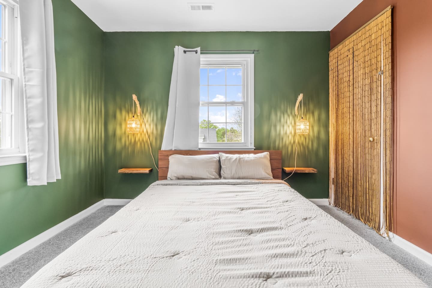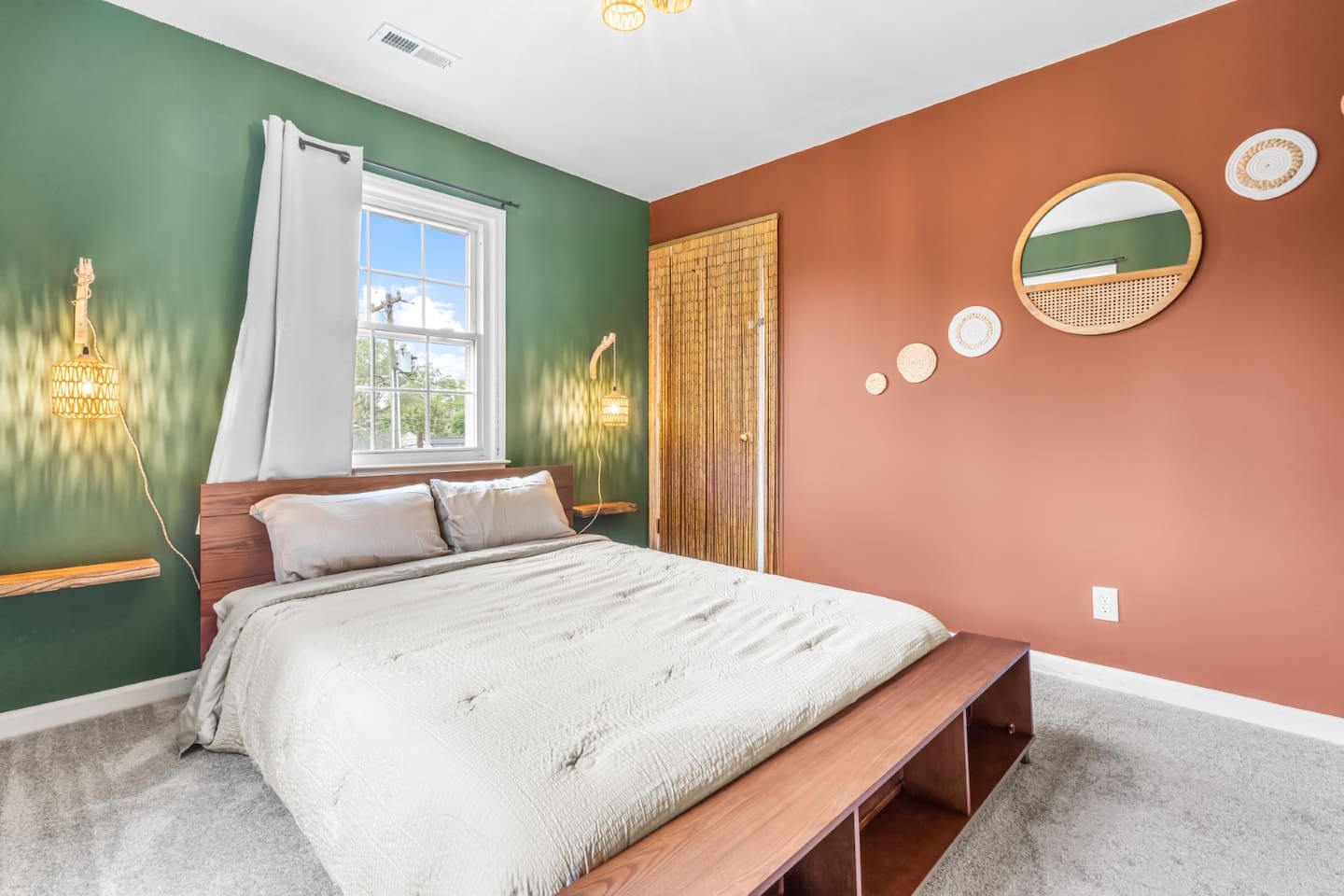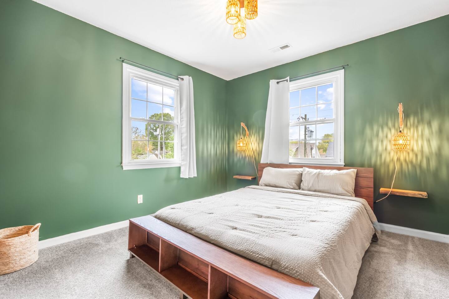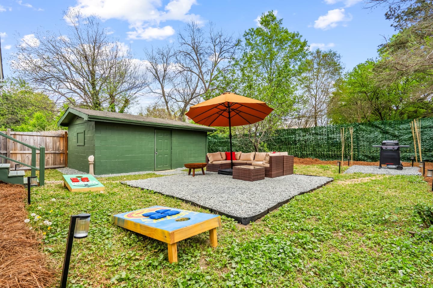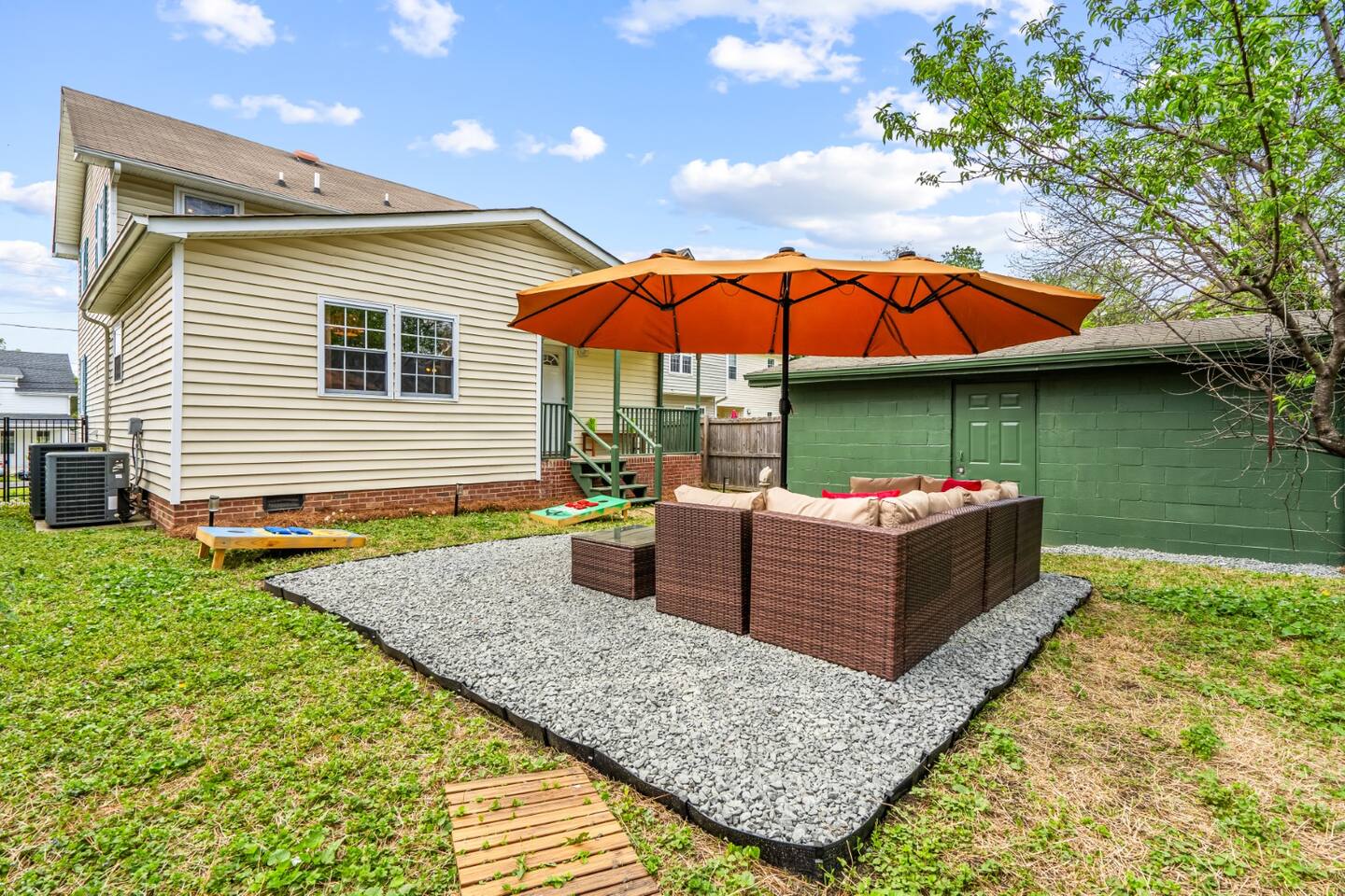 Spacious Boho 5BR Durham getaway! Enjoy a king, 2 queens, 2 twins & a cozy daybed room. Fully equipped kitchen, dining room, BBQ grill, pool table, board games & cornhole. Huge backyard with fire pit & outdoor lounge. Minutes to downtown Durham & Duke University—perfect for family & group stays.