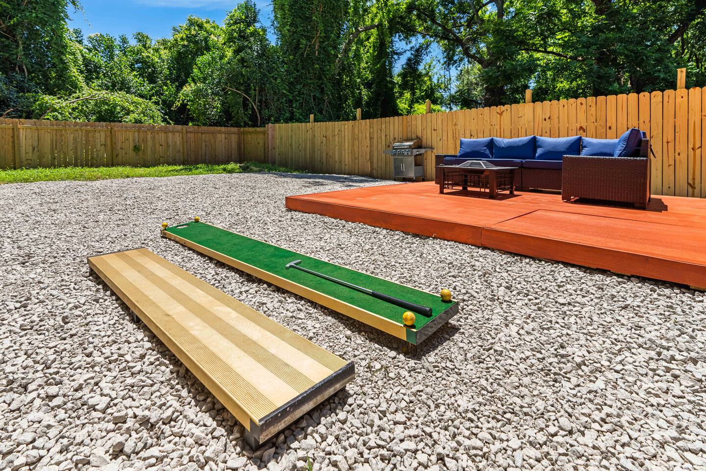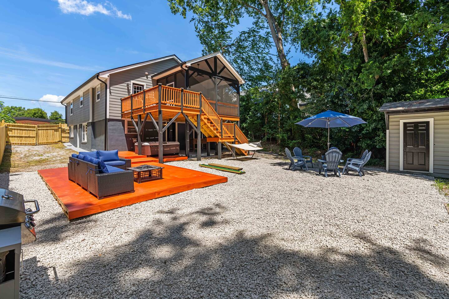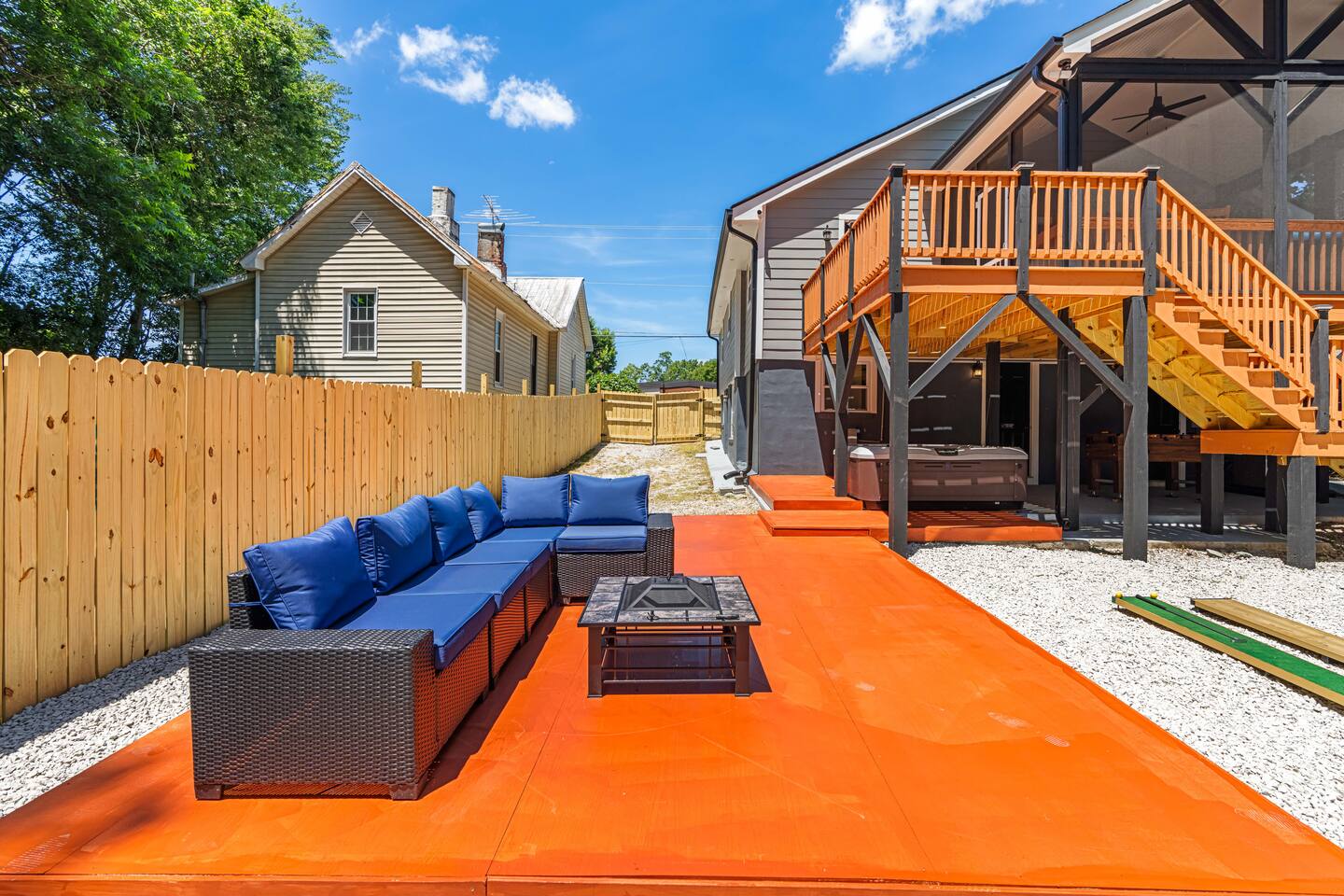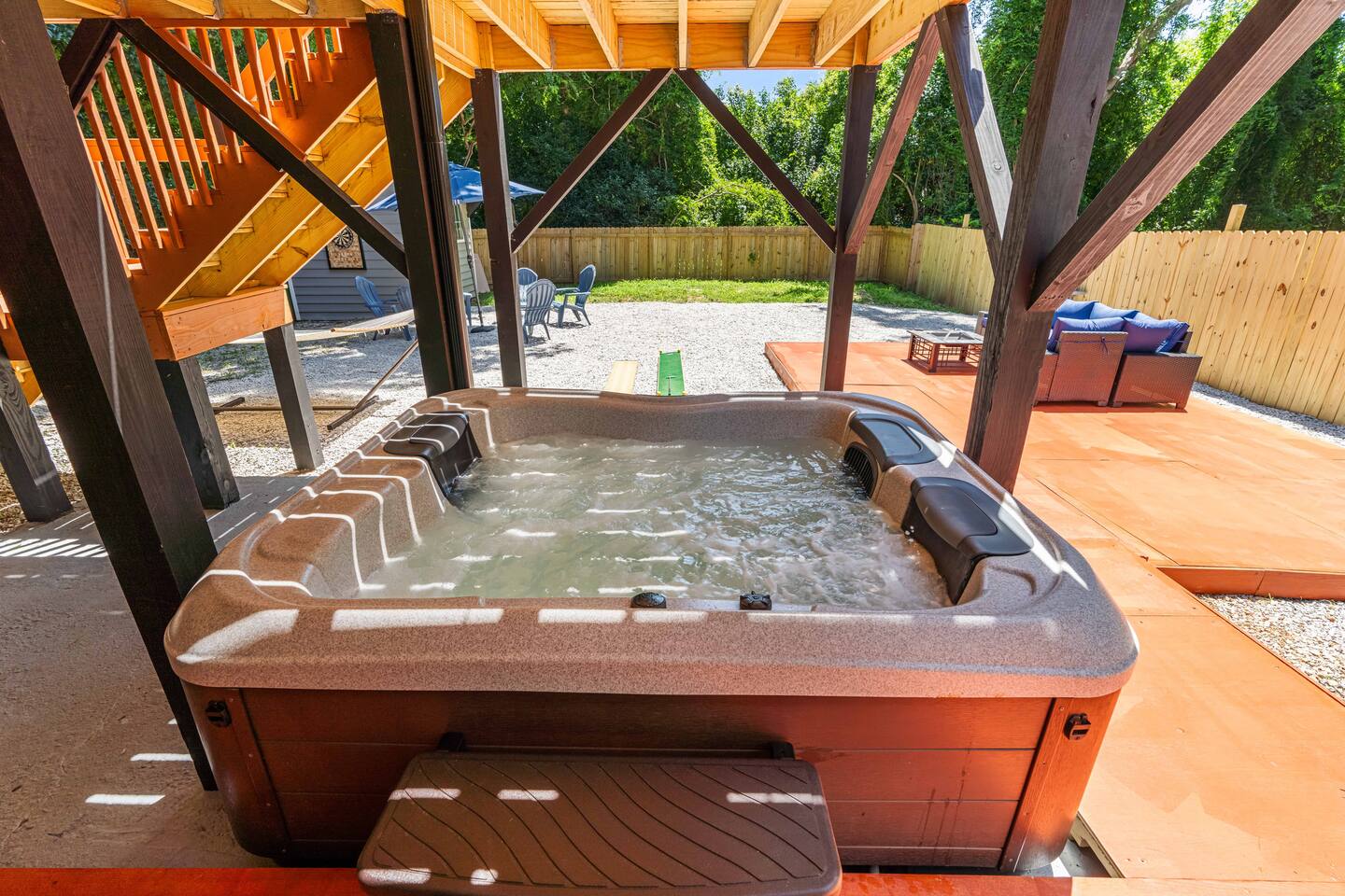 Newly renovated 5BR Boho Villa on a quiet, peaceful street just steps from downtown Raleigh. Soak in the private indoor hot tub, then relax on the spacious patio with a cozy fireplace, bar, and TV. The large backyard features a hammock chair, Adirondack chairs, couches, BBQ grill, plus fun games like darts, foosball, mini golf, and board games—perfect for family and friends. Inside, enjoy stylish new finishes, a fully equipped kitchen, quality furniture, and 4 smart TVs.