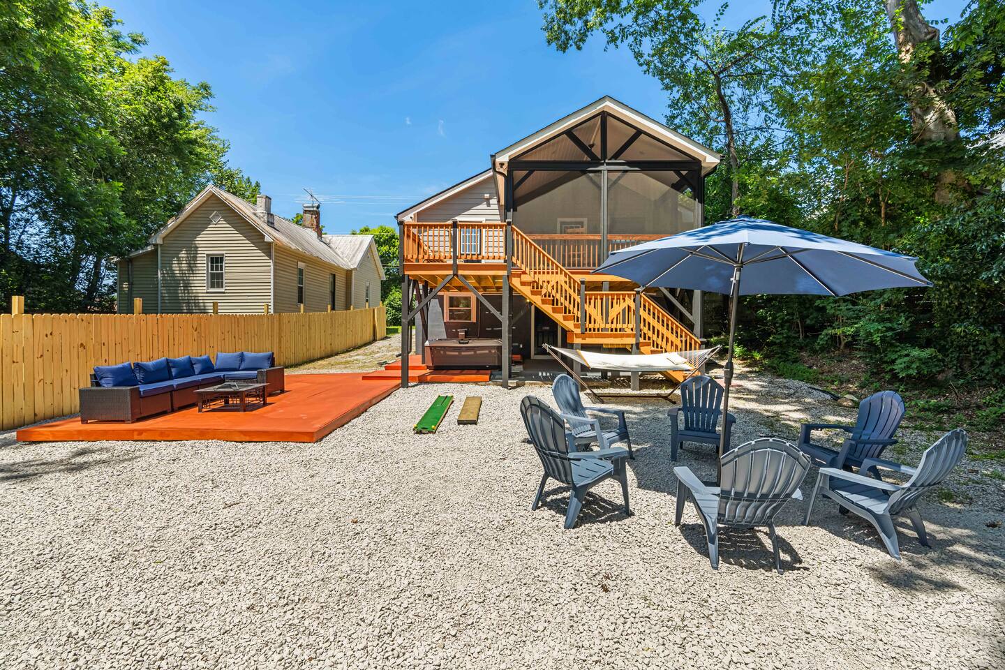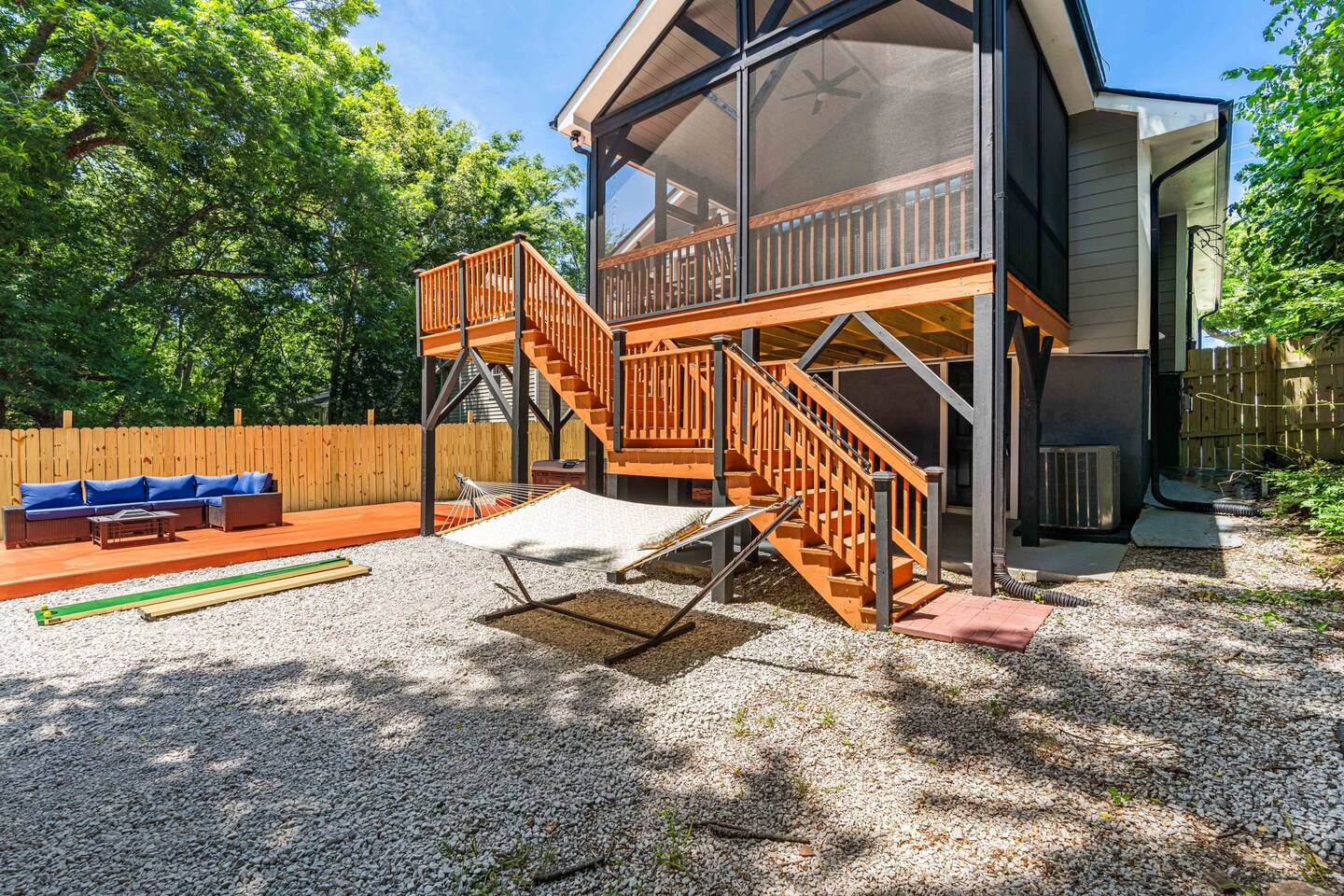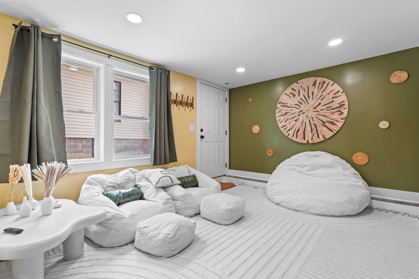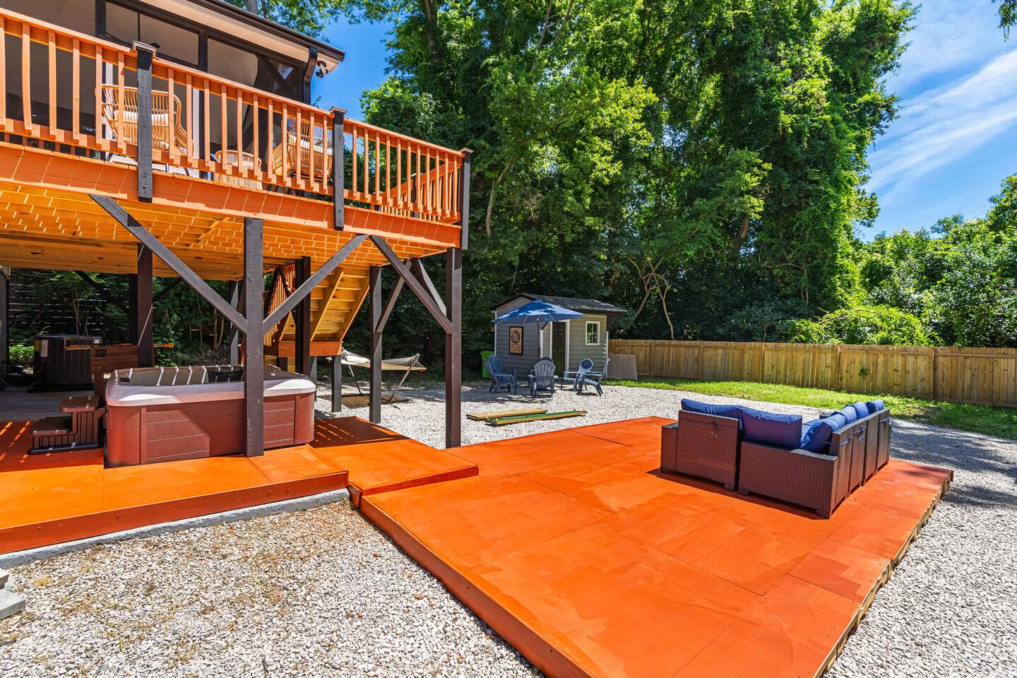 Newly renovated 5BR Boho Villa on a quiet, peaceful street just steps from downtown Raleigh. Soak in the private indoor hot tub, then relax on the spacious patio with a cozy fireplace, bar, and TV. The large backyard features a hammock chair, Adirondack chairs, couches, BBQ grill, plus fun games like darts, foosball, mini golf, and board games—perfect for family and friends. Inside, enjoy stylish new finishes, a fully equipped kitchen, quality furniture, and 4 smart TVs.
