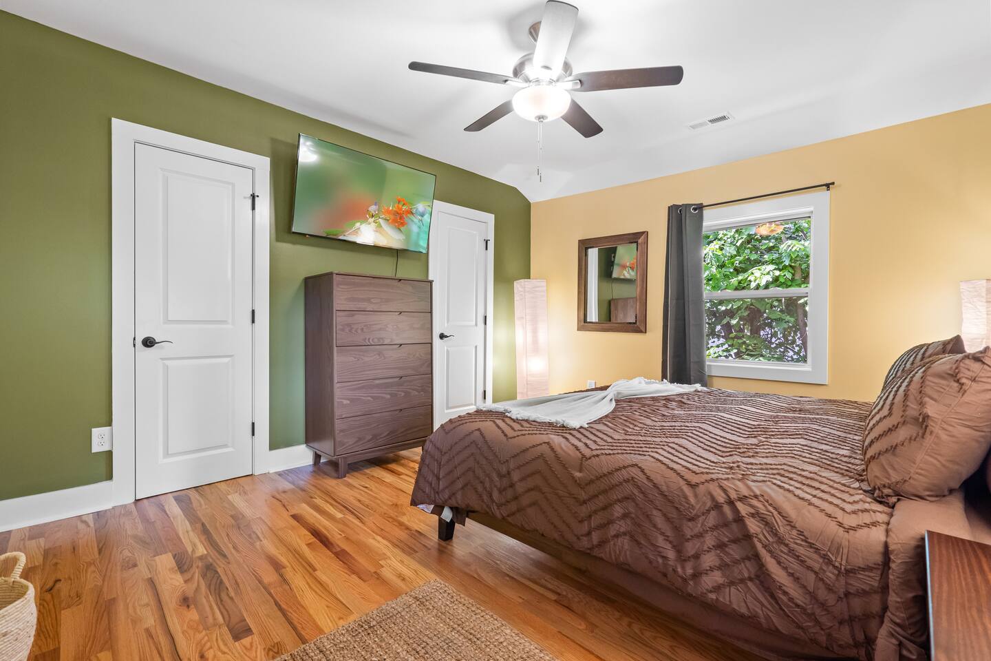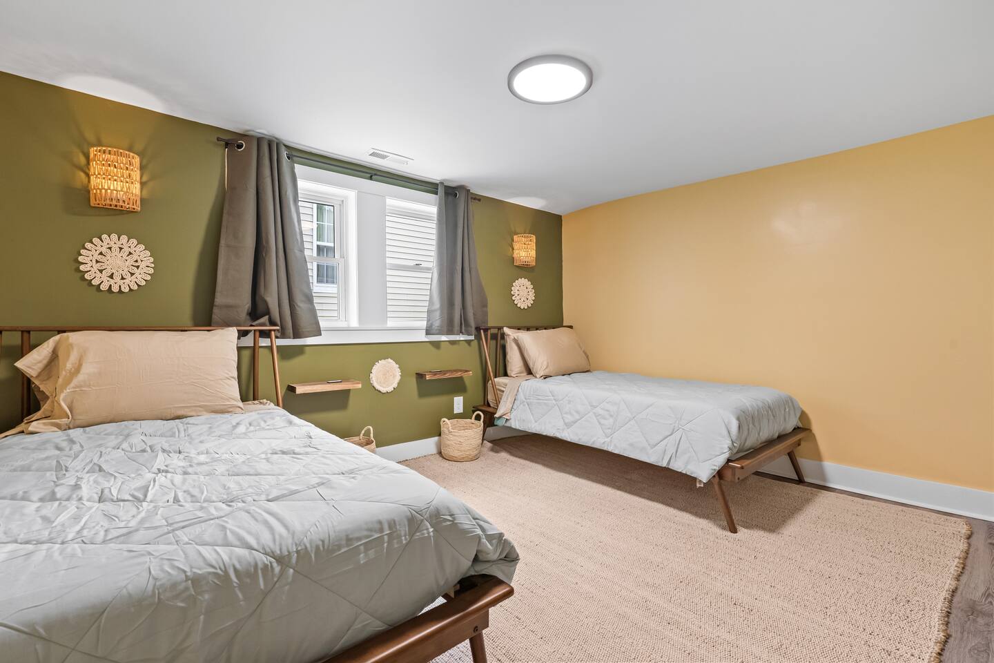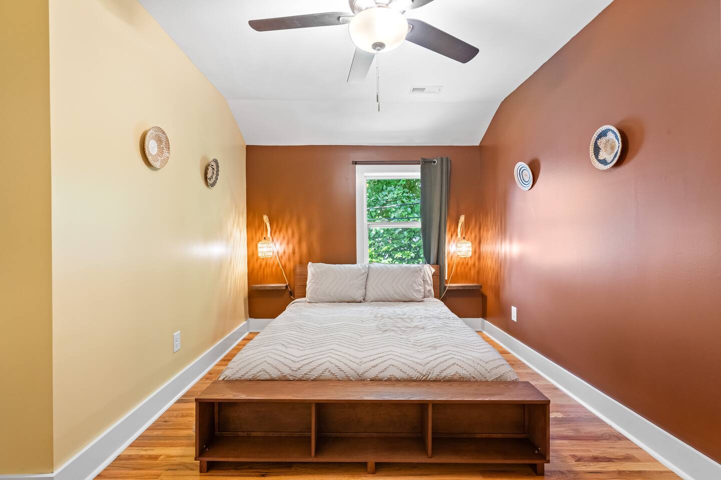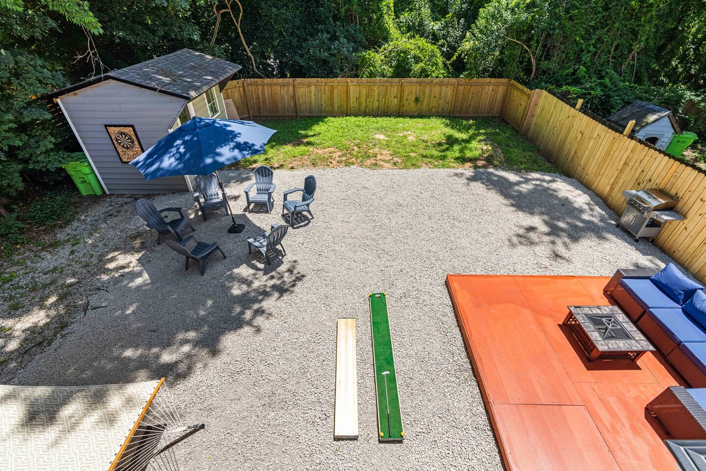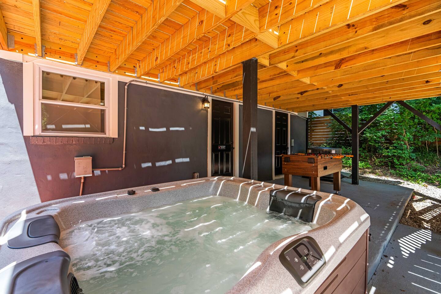 Newly renovated 5BR Boho Villa on a quiet, peaceful street just steps from downtown Raleigh. Soak in the private indoor hot tub, then relax on the spacious patio with a cozy fireplace, bar, and TV. The large backyard features a hammock chair, Adirondack chairs, couches, BBQ grill, plus fun games like darts, foosball, mini golf, and board games—perfect for family and friends. Inside, enjoy stylish new finishes, a fully equipped kitchen, quality furniture, and 4 smart TVs.